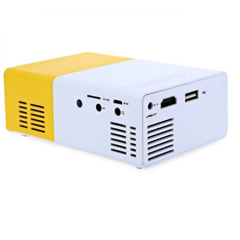 Попри невеликий розмір, YG-300 підтримує відео у Full HD якості, а завдяки вбудованому динаміку забезпечує повноцінне звучання без додаткових колонок. Ви можете легко підключити флешку, смартфон, ноутбук або ігрову приставку через HDMI, USB або AV-вхід. Також передбачено слот для карти пам’яті microSD та вихід на навушники.