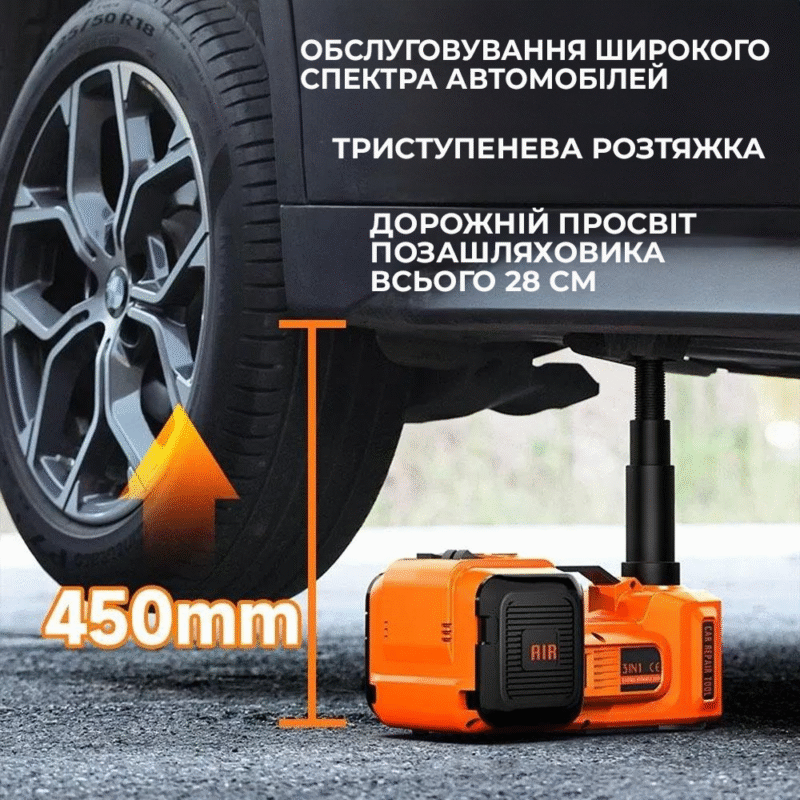 9 відгуків для Набір 3в1 електродомкрат 12V (до 3,5 т) + компресор + ліхтар (180 Вт)