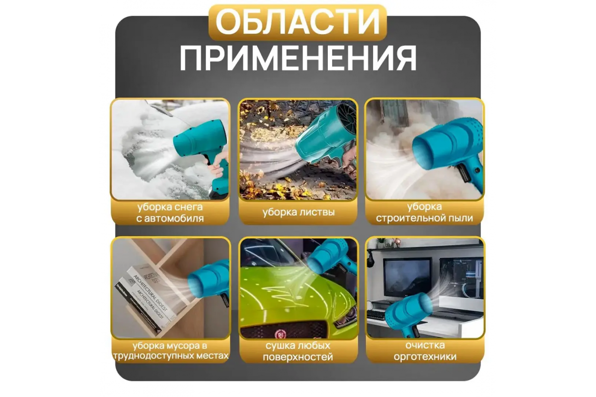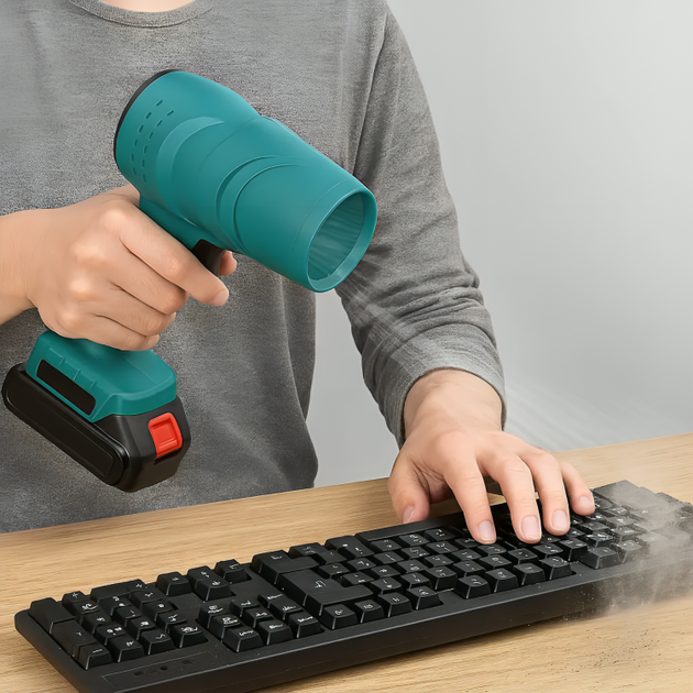 Цей пристрій створює сильний повітряний потік, який легко здуває листя, пил, тирсу, дрібний сміття, пісок чи навіть легкий сніг. Ідеально підходить також для очищення комп’ютерів, техніки, садових меблів або важкодоступних місць.
