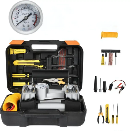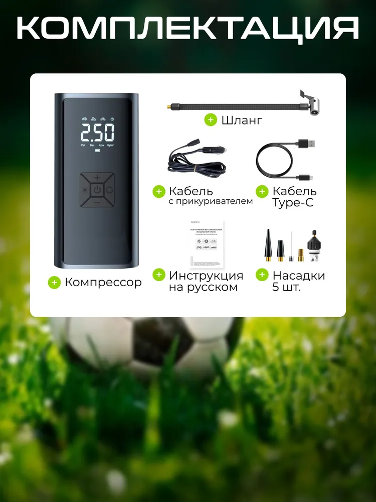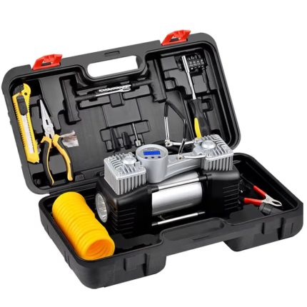 Автомобільний акумуляторний компресор ATJ‑6900 — компактний і автономний помічник у дорозі, який забезпечує швидке накачування шин, м’ячів, матраців та інших надувних предметів без використання бортової акумуляторної батареї. Укомплектований великим акумулятором (6000 мА·год), яскравим LED‑дисплеєм та LED‑ліхтарем, що дозволяє легко контролювати тиск і працювати у темряві