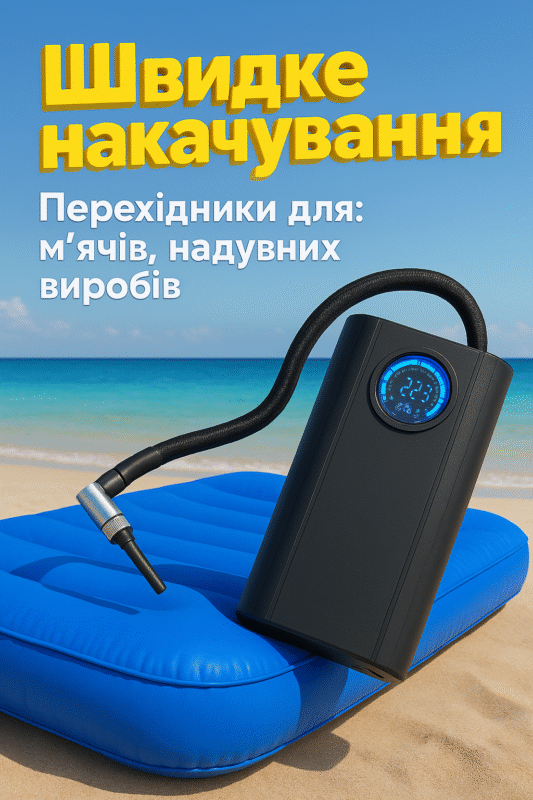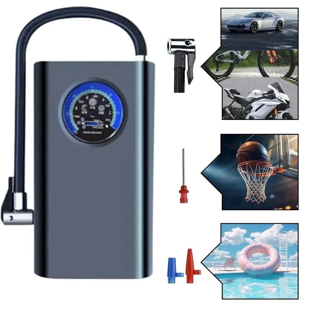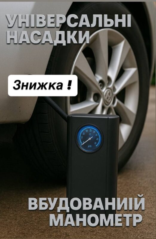 Компактний та ефективний автомобільний компресор з підсвіткою, вбудованим манометром і насадками — незамінний помічник для водіїв. Забезпечує швидке накачування шин, м’ячів, надувних човнів та ін.
