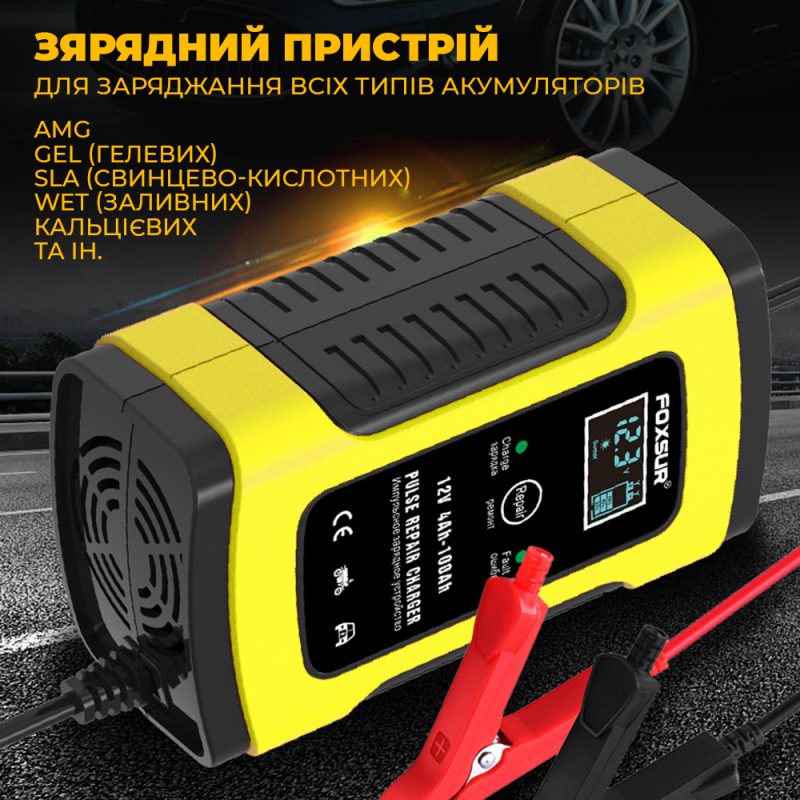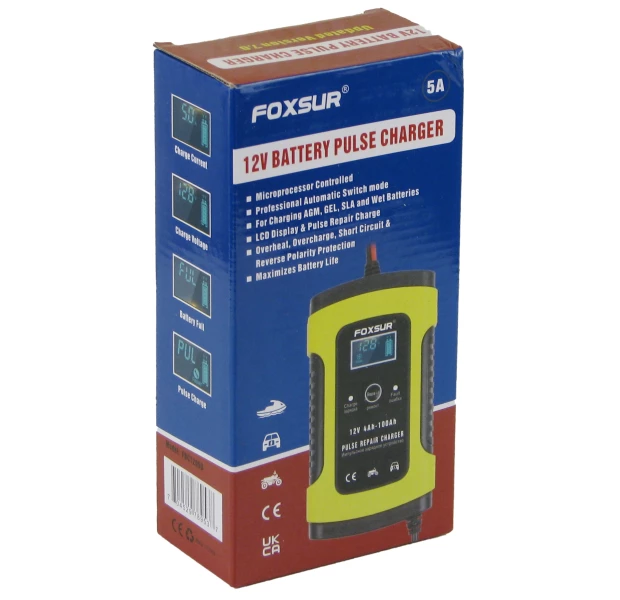 FOXSUR 12V/5A — це інтелектуальний зарядний пристрій, розроблений для ефективної зарядки автомобільних і мотоциклетних акумуляторів ємністю до 100 А·год. Оснащений мікропроцесором і декількома режимами роботи, забезпечує повністю автоматичну та безпечну зарядку.
