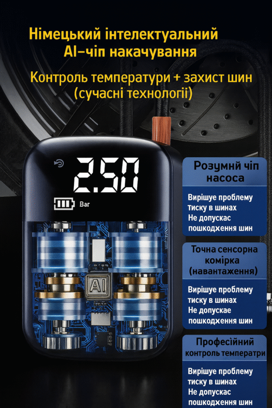 Потужний бездротовий автокомпресор 3-в-1 з ліхтариком і повербанком