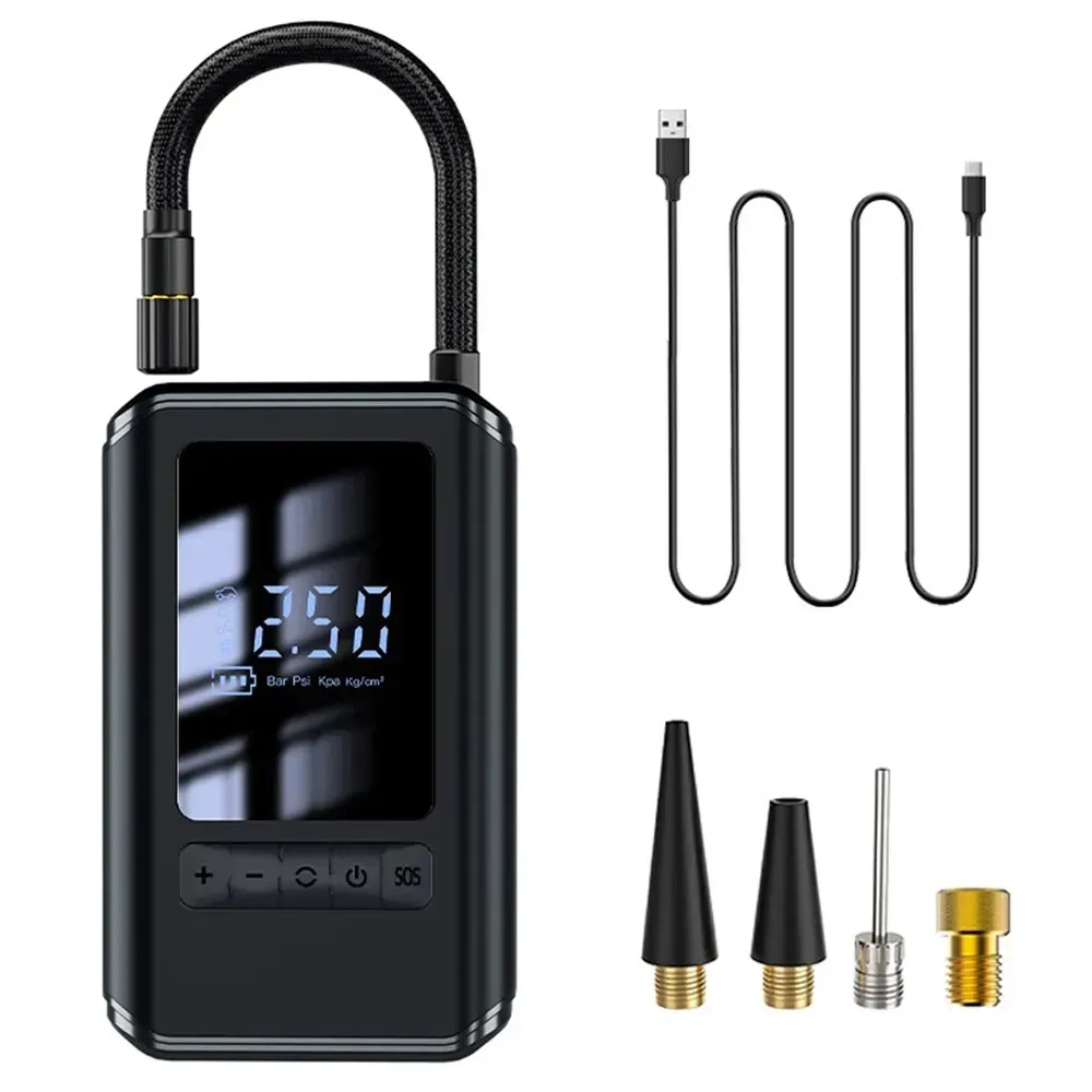 КомплектаціяКомпресор, USB-кабель, кабель для прикурювача, 4 насадки, інструкція, упаковка
