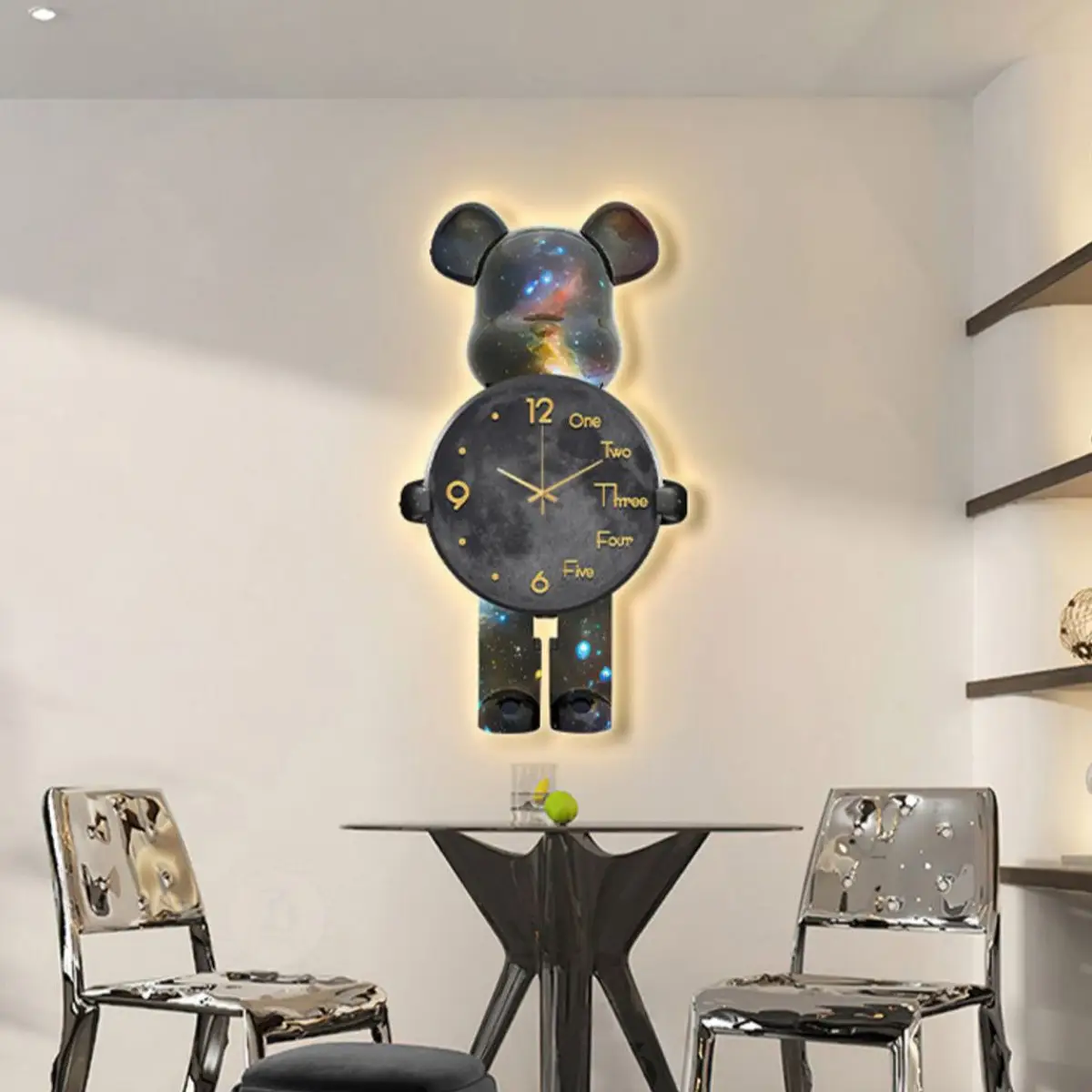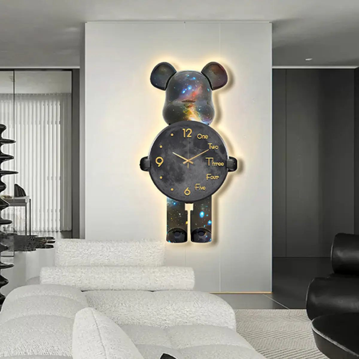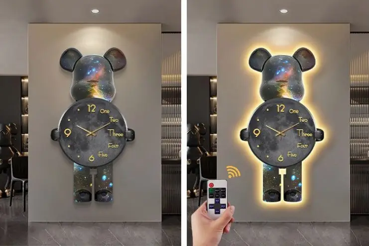 Дизайнерський настінний годинник Bearbrick — це не лише прилад для визначення часу, а й стильна прикраса інтер’єру. Форма у вигляді космічного ведмедя, плавне LED-підсвічування та сучасний кварцовий механізм створюють неповторну атмосферу у вашій кімнаті. Підходить для вітальні, дитячої, студії або офісу.