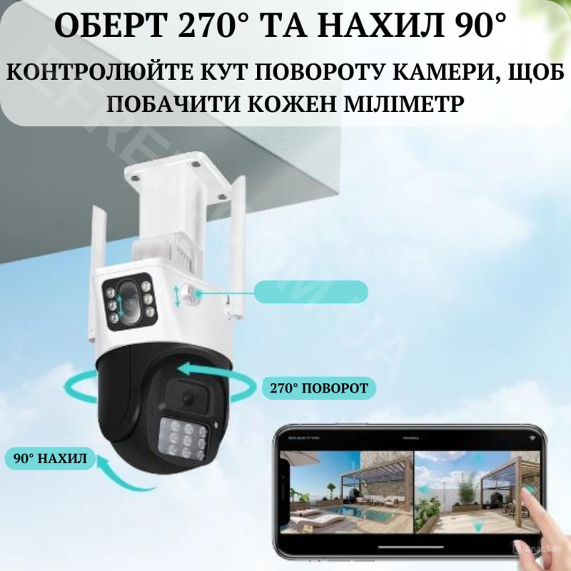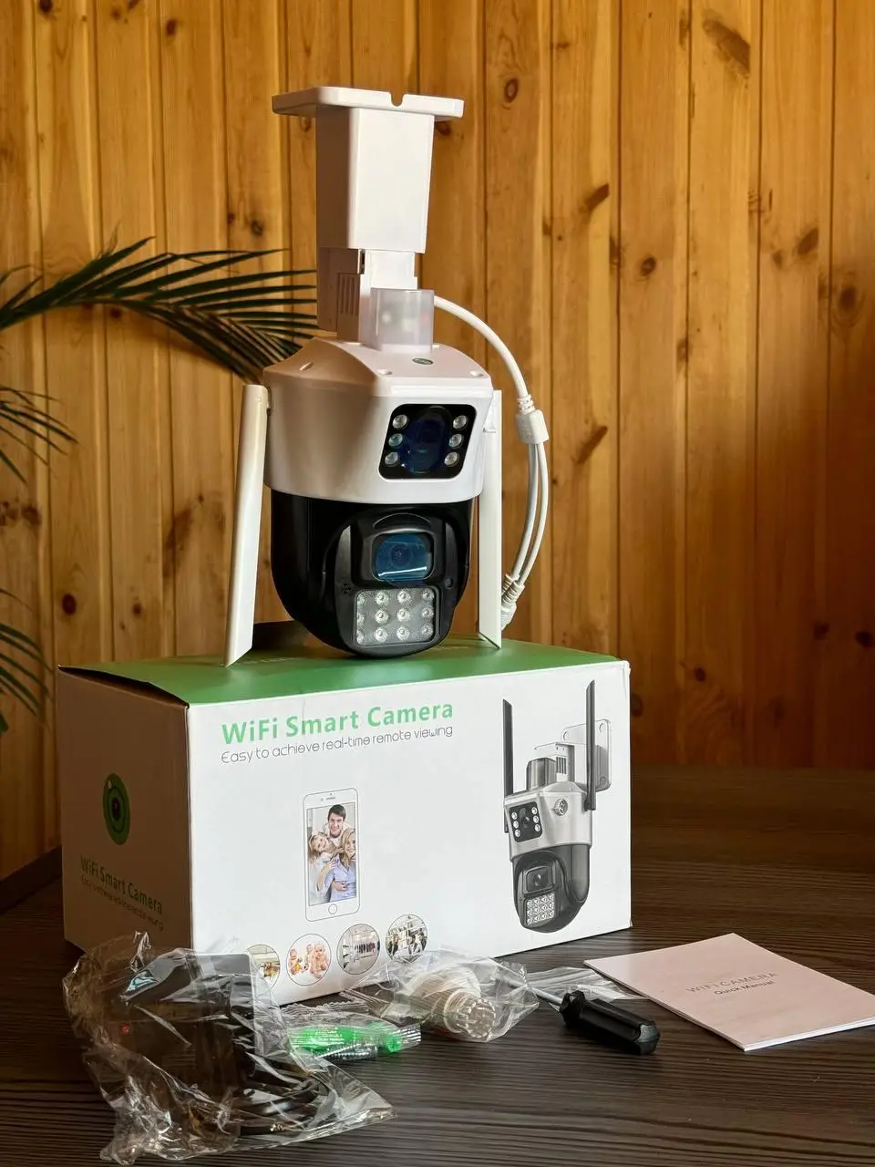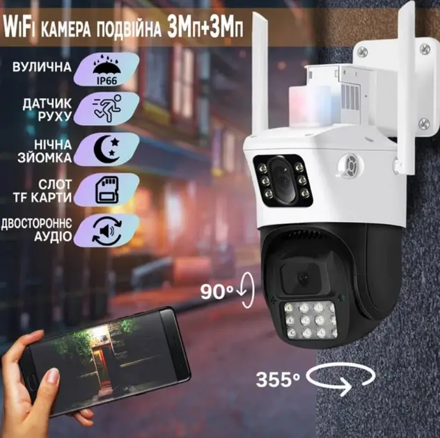 Ця камера нового покоління поєднує подвійний об’єктив із широким кутом огляду, підтримку 6МП, нічне кольорове бачення, поворот PTZ, двосторонній звук та підключення через Wi-Fi. Управляється через популярні додатки ICSEE або Tuya Smart, має розумні функції трекінгу руху та попередження.