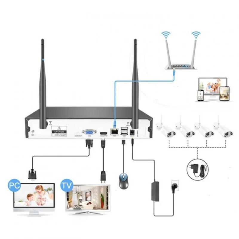 Комплект відеоспостереження DVR 5G KIT CAD WiFi 4 Wi-Fi камери + Full HD реєстратор!