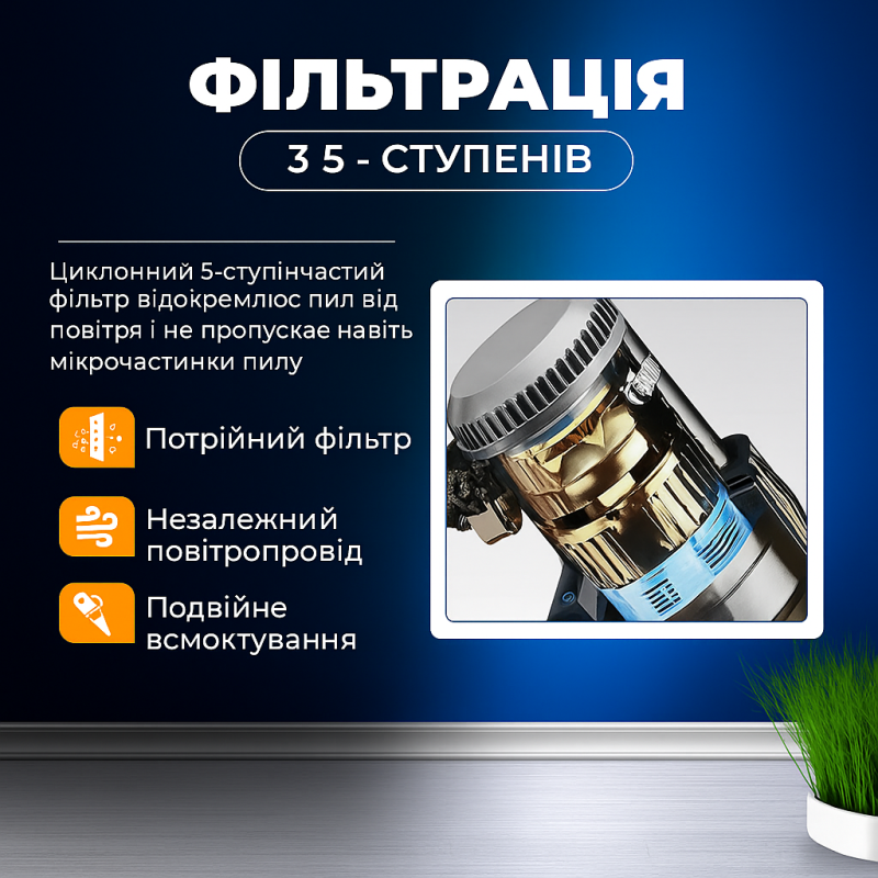 Циклонна фільтрація + HEPA: частинки не повертаються у приміщення