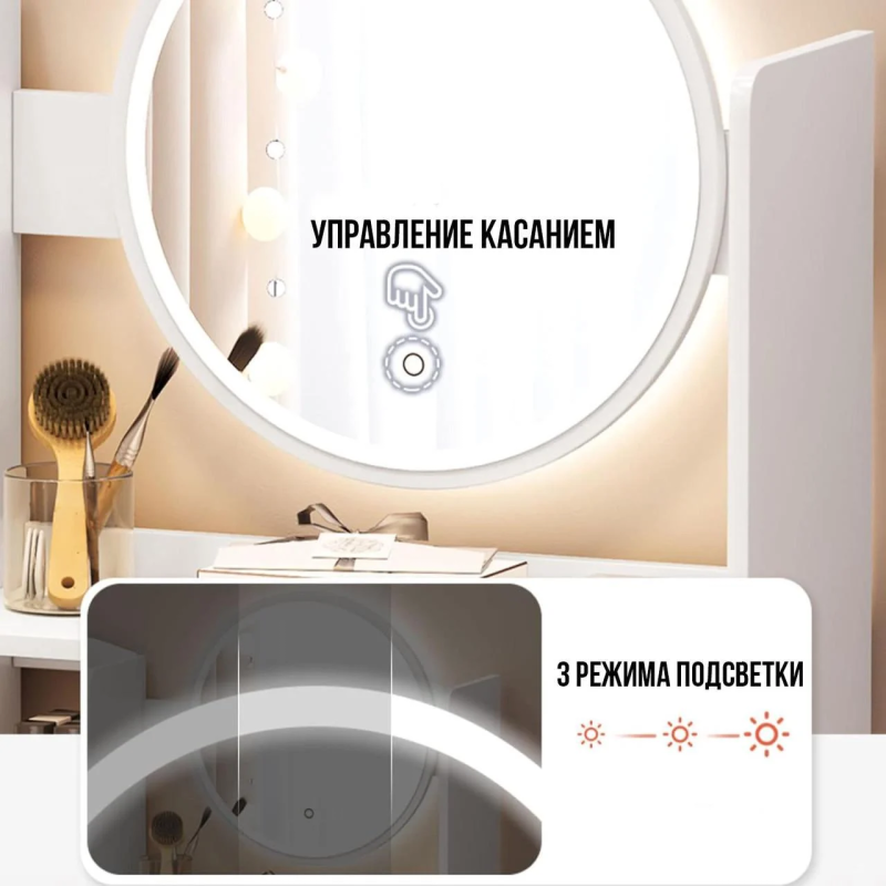 Косметичний столик TT811 з LED-підсвіткою та дзеркалом (Білий)