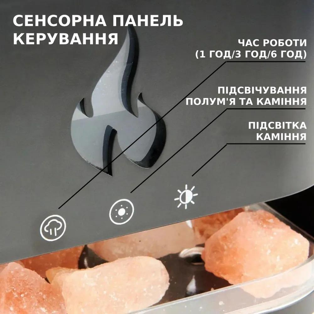 Завдяки ультразвуковій технології пристрій тихо розпилює вологу, зволожуючи повітря та покращуючи мікроклімат. А світлодіодна імітація вогню надає йому унікального, заспокійливого вигляду.