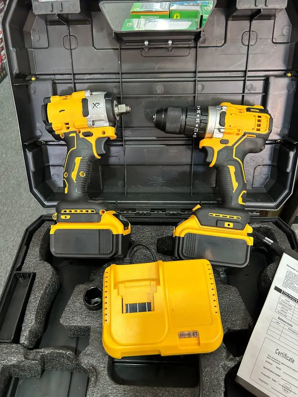 ей універсальний набір 2-в-1 складається з акумуляторного шурупокрута та гайковерта — два потужні інструменти в одному комплекті. Ідеально підходить як для домашнього використання, так і для майстрів, монтажників, автомеханіків, сантехніків.