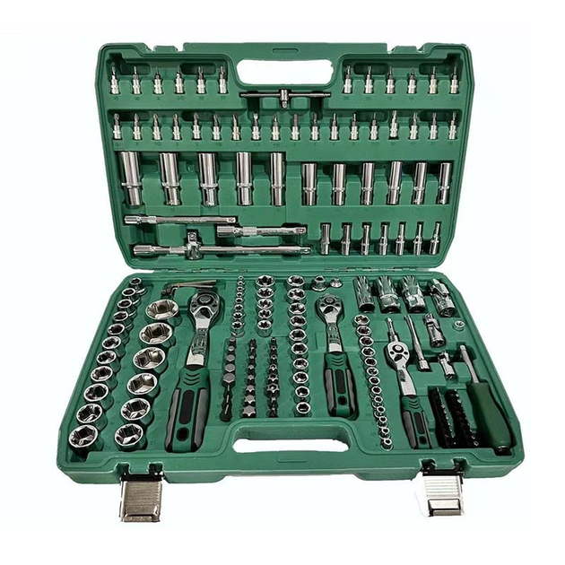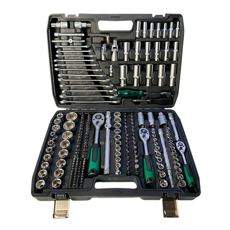 Виготовлений із хром-ванадієвої сталі, яка забезпечує високу міцність, зносостійкість і довгий термін служби. Усі елементи розміщені у зручному кейсі з фіксаторами, щоб інструменти завжди були під рукою та в порядку.