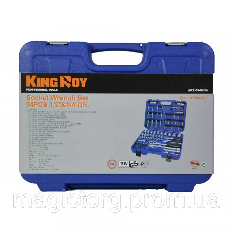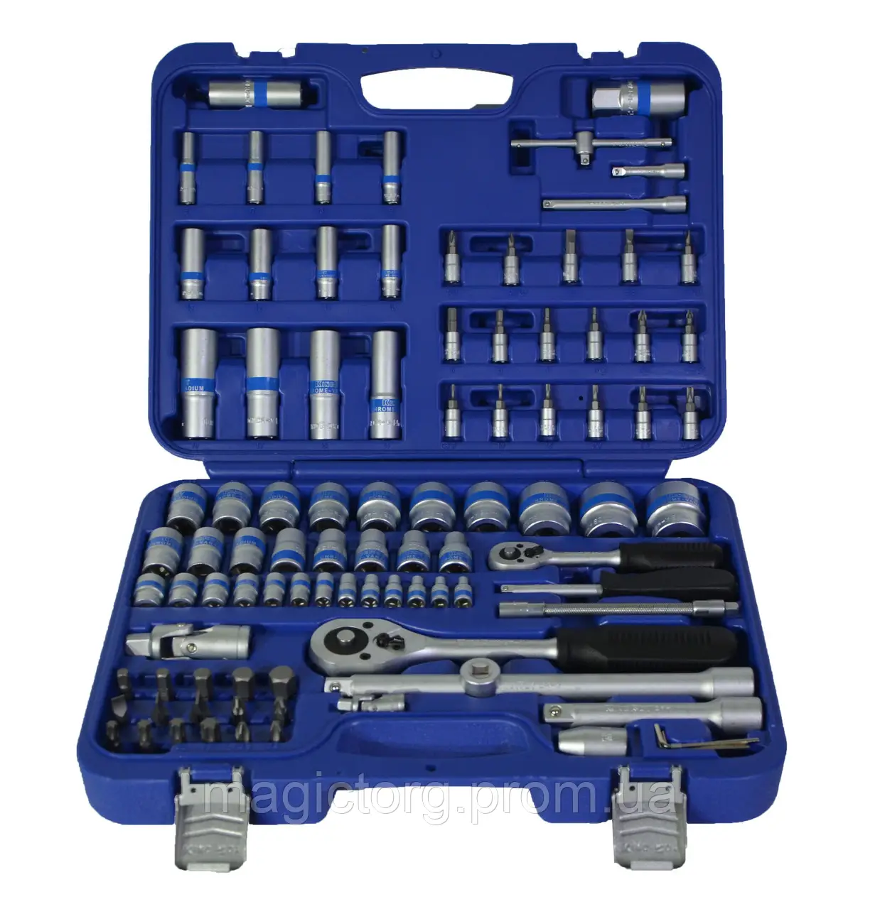 У наборі є ключі, біти, викрутки, тріскачка, насадки та інші інструменти для щоденних завдань, ремонту техніки, меблів чи авто.