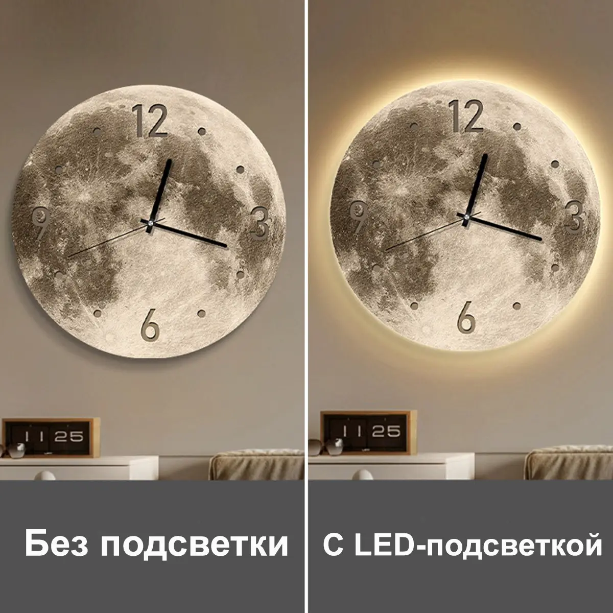 Настінний годинник “Місяць” з LED-підсвіткою Ø40 см (арабські цифри + точки)