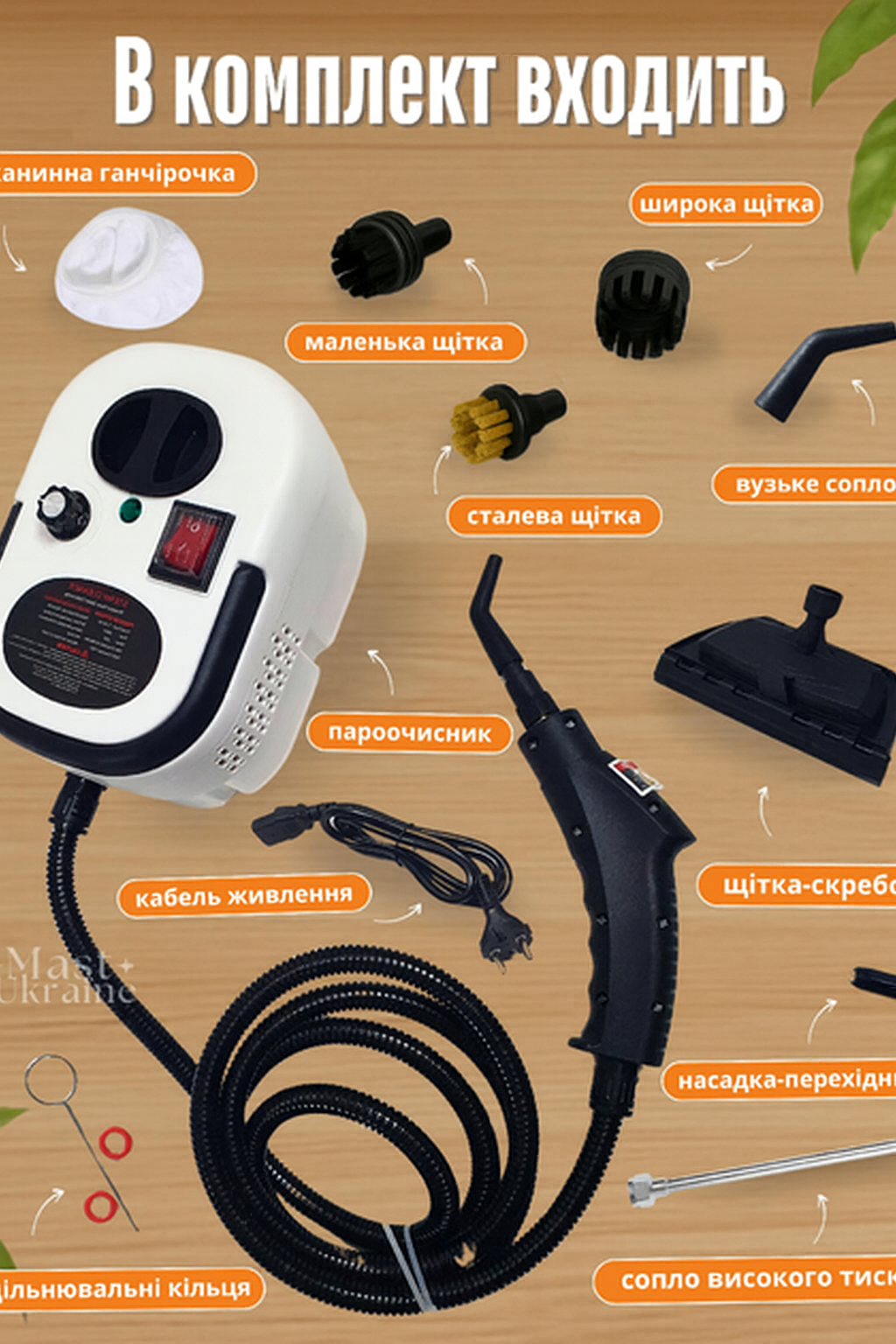 • 💨 Паровий тиск до 4,5 бар та температура пари 105°C — забезпечує глибоке очищення навіть у важкодоступних місцях.
