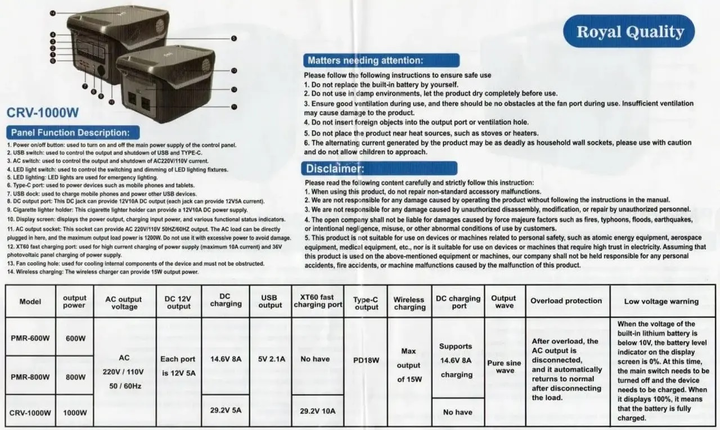 Портативна зарядна станція UKC 1000 Вт — це надійне джерело живлення для дому, авто, кемпінгу чи аварійних ситуацій. Оснащена USB, Type-C, 220В розетками, LED-ліхтарем, LCD-дисплеєм і бездротовою зарядкою. Гарантія — 12 місяців.