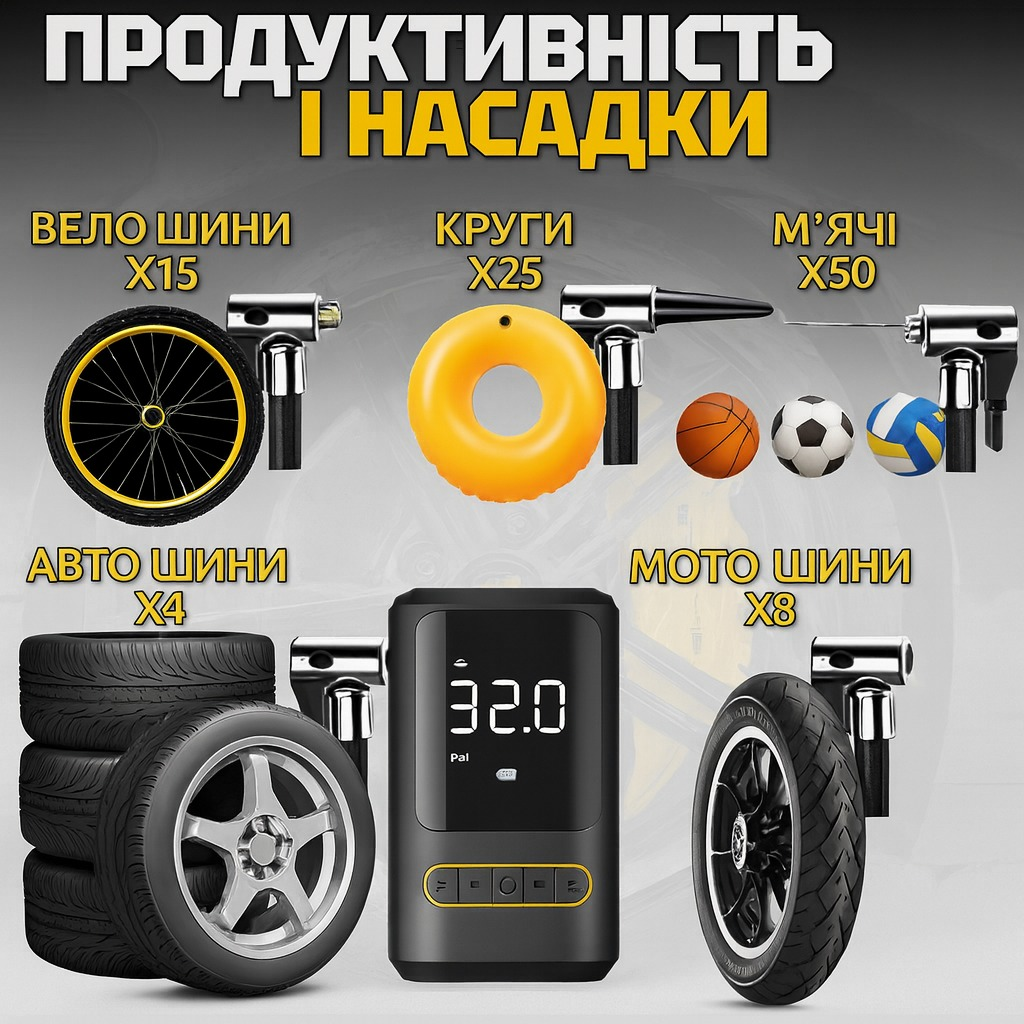 З CX-329 ви легко вирішите проблему спущеного колеса, м’якого м’яча чи підкачки матраца будь-де — без зайвих турбот, без проводів, без розеток.