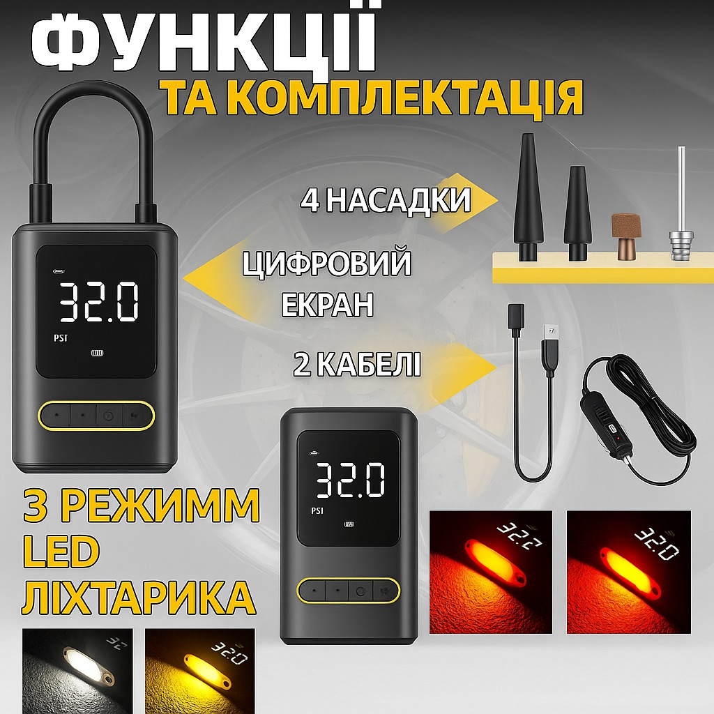 Портативний автомобільний насос CX-329 — Надійний міні-сервіс у вашому багажнику