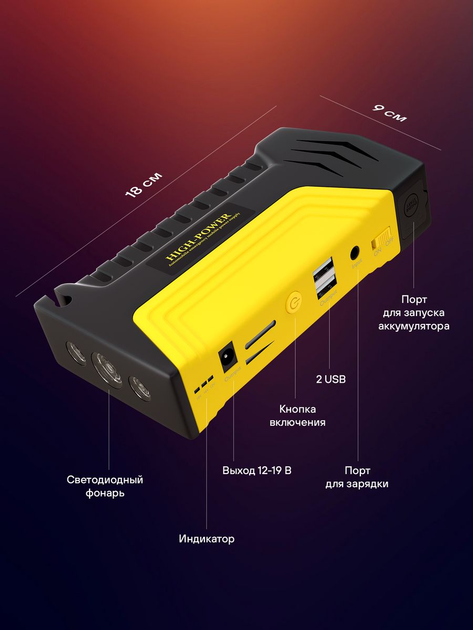 Пуско-зарядний пристрій (50800mAh) є універсальним автономним пуско-зарядним пристроєм автомобіля та іншої автотехніки, що працює від АКБ. Він запустить будь-який двигун при акумуляторі, що сів, навіть у мороз! Нова вдосконалена конструкція пристрою дозволяє передавати струм у 10 разів, що перевищує чисельне значення його ємності. Для зручності старт кабель із крокодилами автомобільного акумулятора вже в комплекті.