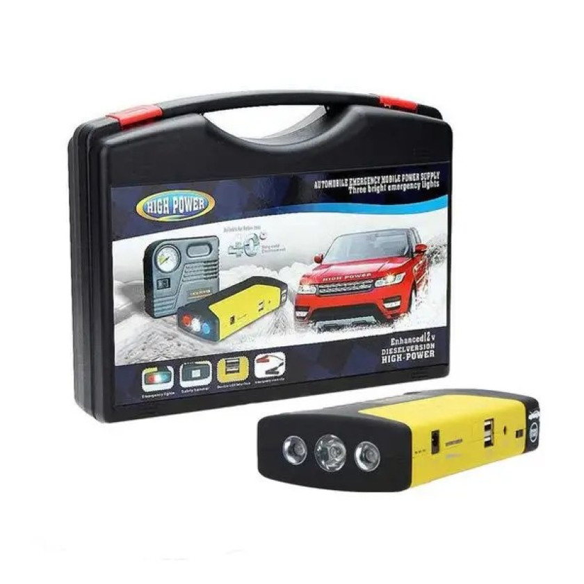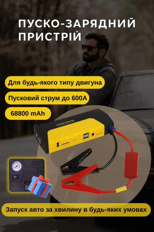 Пускозарядний пристрій STARTER 68800 mAh — надійний помічник для вашого авто з вбудованим компресором і ліхтарем.