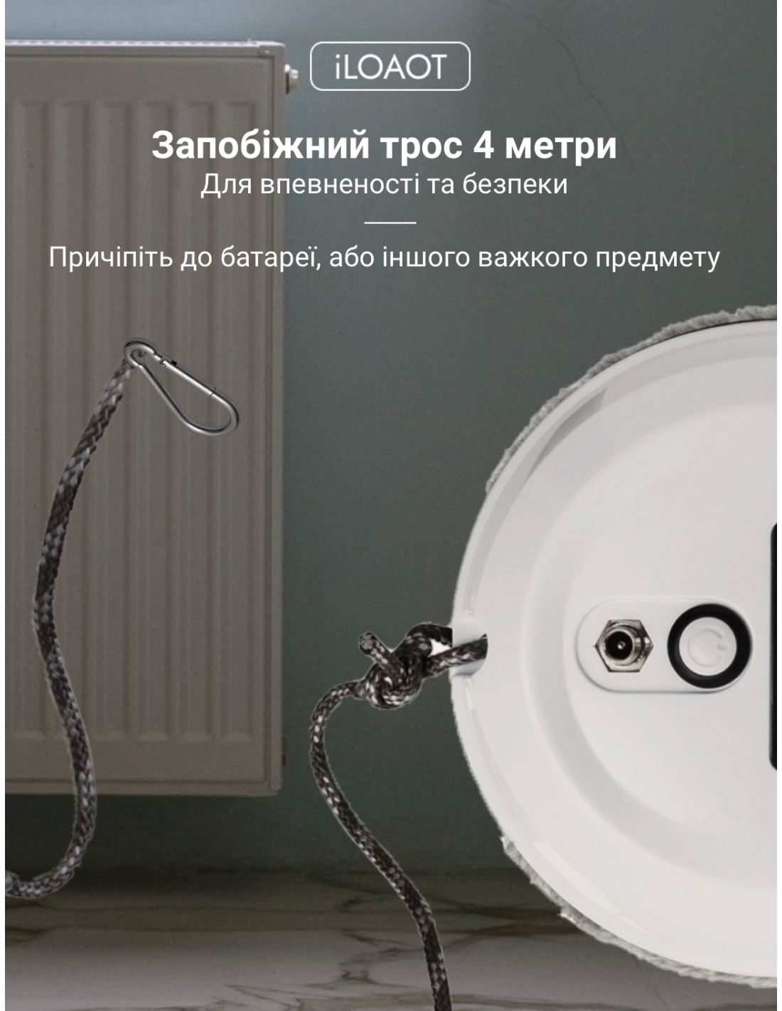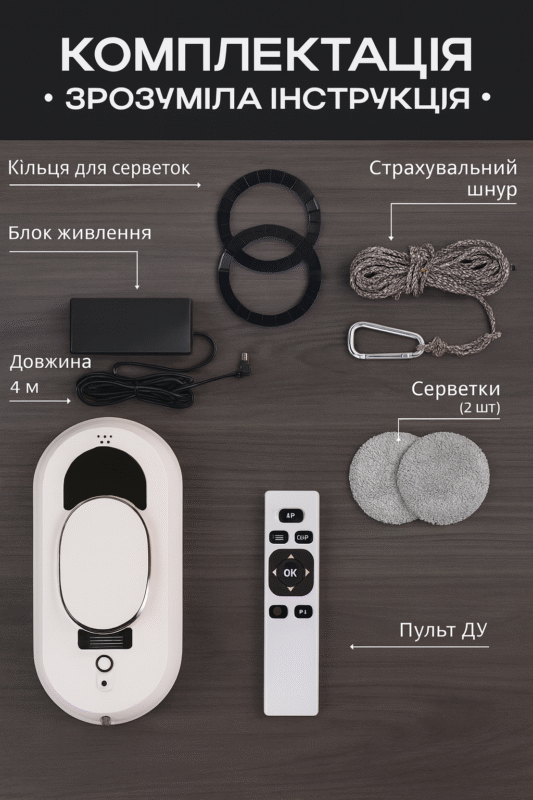| Безпека | Страхувальний трос, присоски, сенсори падіння |