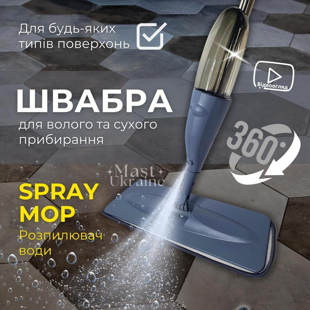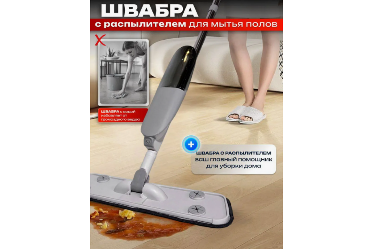Сучасна швабра з вбудованим розпилювачем води — це ідеальне рішення для щоденного прибирання! Просто натисніть на ручку — і мікропомпа рівномірно розпилить воду на підлогу, дозволяючи миттєво прибрати пил, розводи, плями або шерсть.