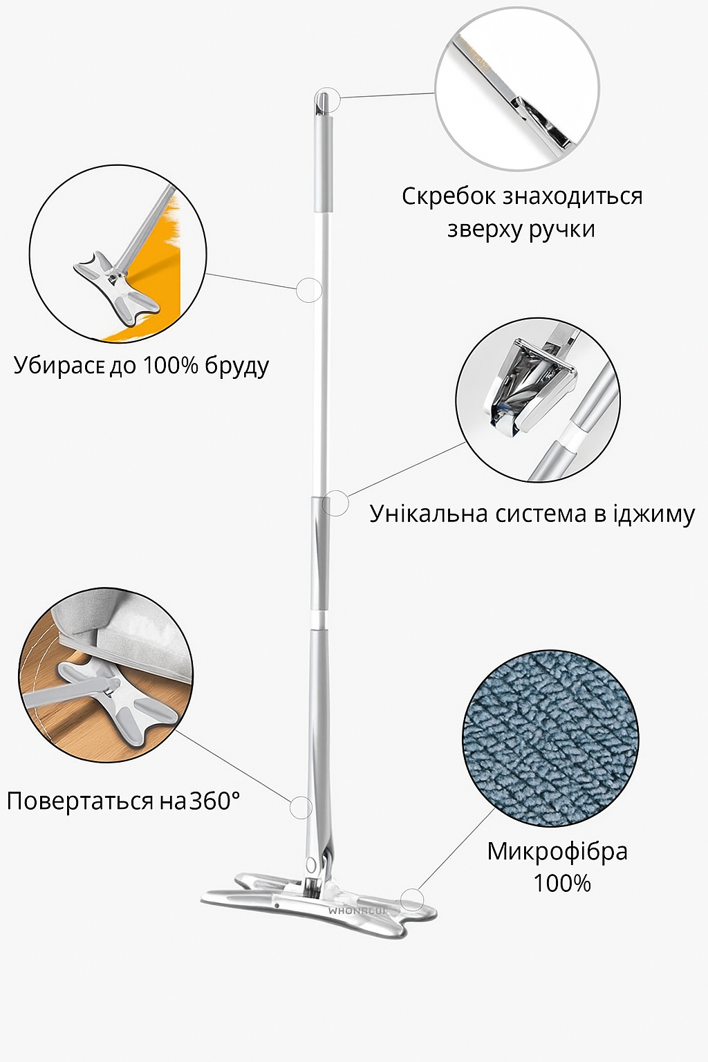 Інноваційна швабра з віджимом X-Type є сучасним інструментом для прибирання підлоги, який полегшує процес миття і сушіння поверхні. Ця швабра має хрестоподібну форму, а також особливість у вигляді механізму віджиму, що дозволяє ефективно видаляти зайву вологу з губки або ганчірки, що використовується для очищення.