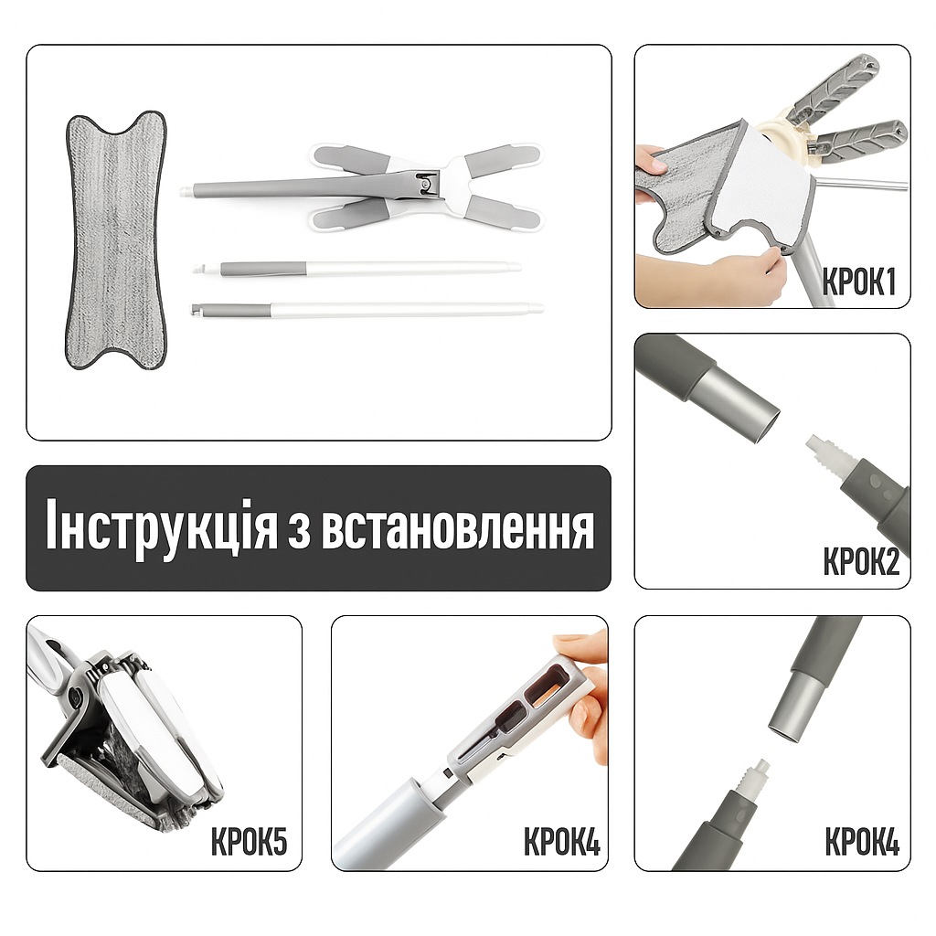 Будьте першим, хто залишив відгук на “Швабра X-Type з віджимом + 2шт насадки + БЛОКИ”