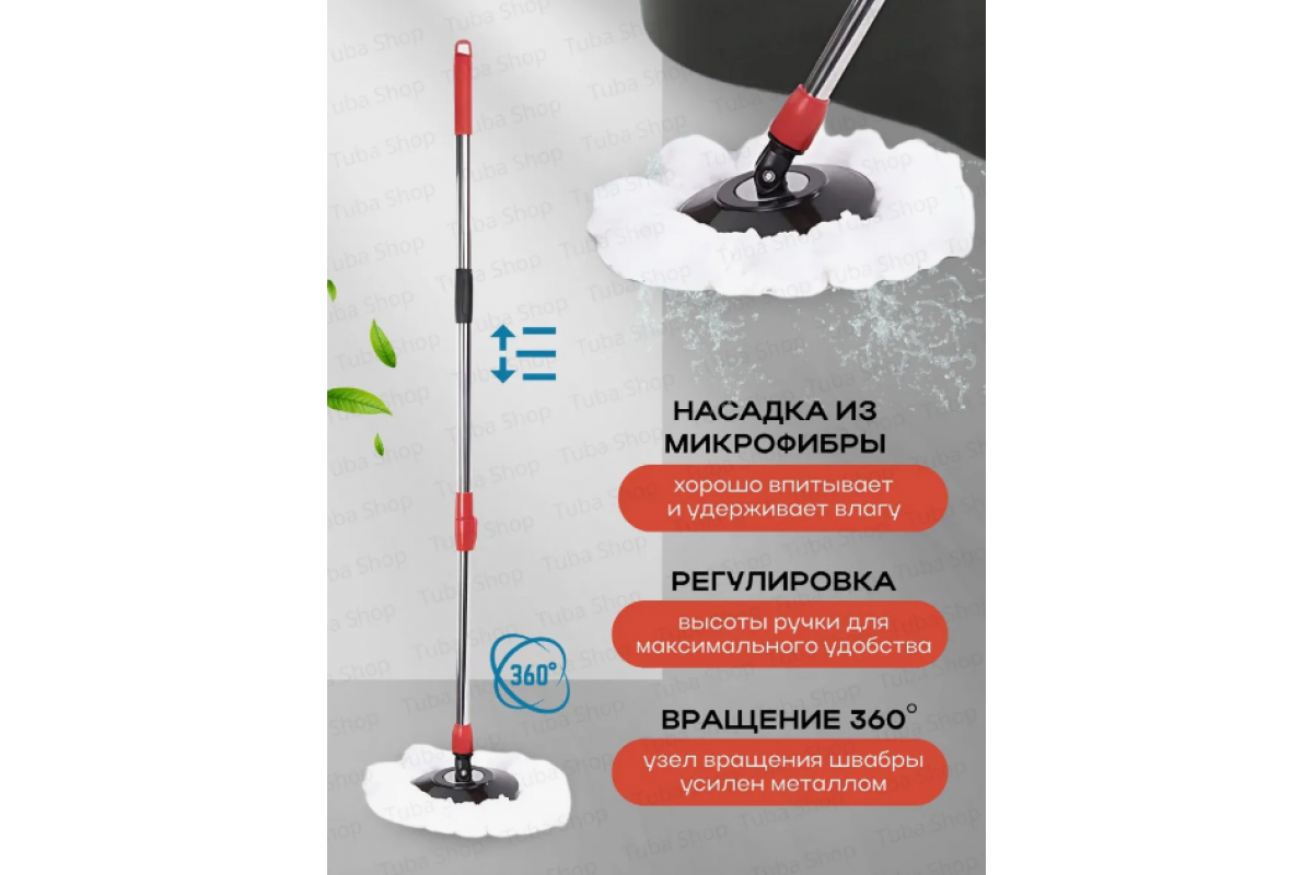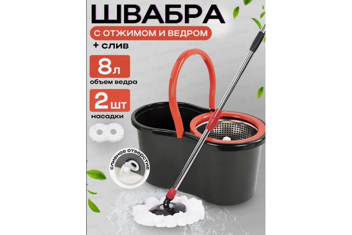 Універсальний набір для прибирання — швабра з відром і центрифугою — це ідеальне рішення для зручного та швидкого миття підлоги без зайвих зусиль. Відро виготовлено з міцного пластику та оснащене металевою віджимною корзиною, що забезпечує ефективне висушування мопа шляхом обертання.
