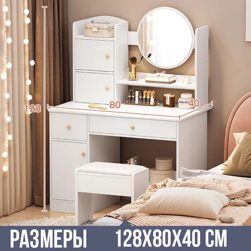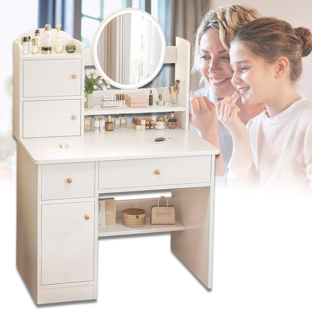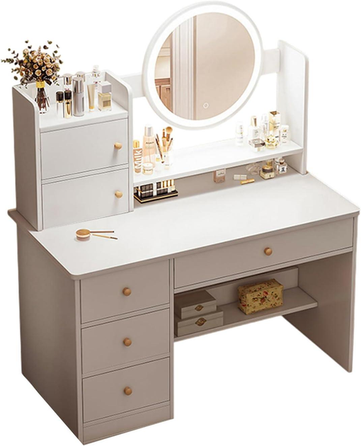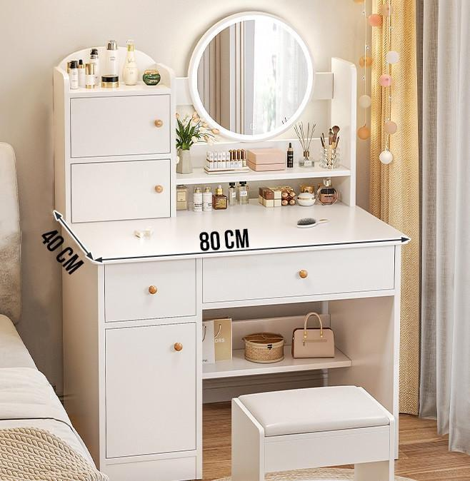 TT811 — сучасний і функціональний туалетний столик для макіяжу з великою дзеркальною панеллю, LED-підсвіткою, зручними шафками та полицями для зберігання косметики, прикрас і аксесуарів. Ідеально доповнить інтер’єр спальні або гардеробної.