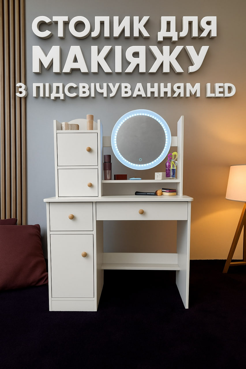 6 відгуків для Стіл для макіяжу з LED дзеркалом STL-MD 72 (Г40/Ш80/В127) (Жовто-БІЛИЙ)